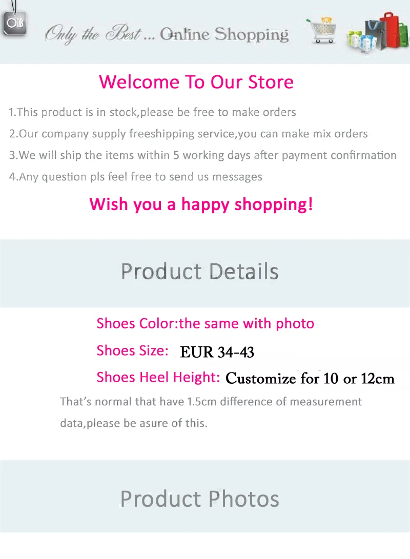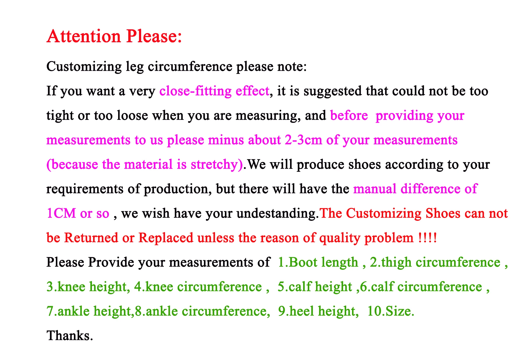 В течение нескольких месяцев я искала этот стиль онлайн (они были только до 11 размеров). И я рад, что я нашли их здесь, что могу настроить то, как я их хочу. Они очень красивые и подходят как перчатка. Просто, чтобы дать вам совет. При измерении размера ног убедитесь, что вы уменьшаете на один дюйм или на один дюйм с половиной вашего обычного размера, если вы хотите, чтобы они были немного завязаны. Кроме того, они очень сексуальные. Фотографии говорят вам все. PS: из-за пандемии доставка идет медленно, но она прибудет к вам.