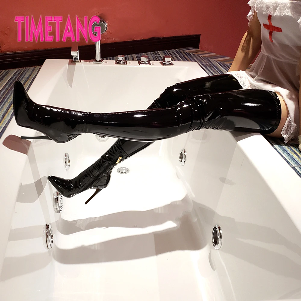 Сапоги женские выше колена, с острым носком, на тонком каблуке