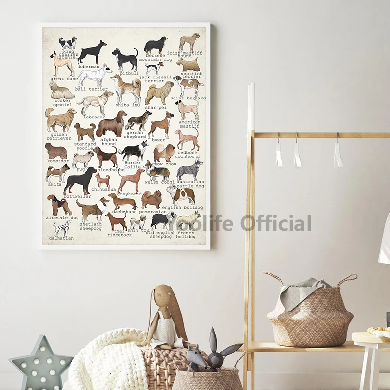 Картина «собаки всех наций», холст, художественные принты, черно-белые собаки, Карта мира, настенная живопись, декор для детской комнаты