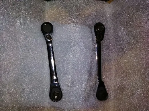 Ключ кривой! Кривой Карл! Как можно было погнуть железку 5см длинной и достаточной прочности? Несколько сильных ударов киянкой и я его выправил. Храповики работают, но иногда подзакусывает. Оба.