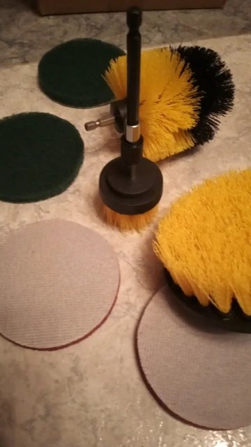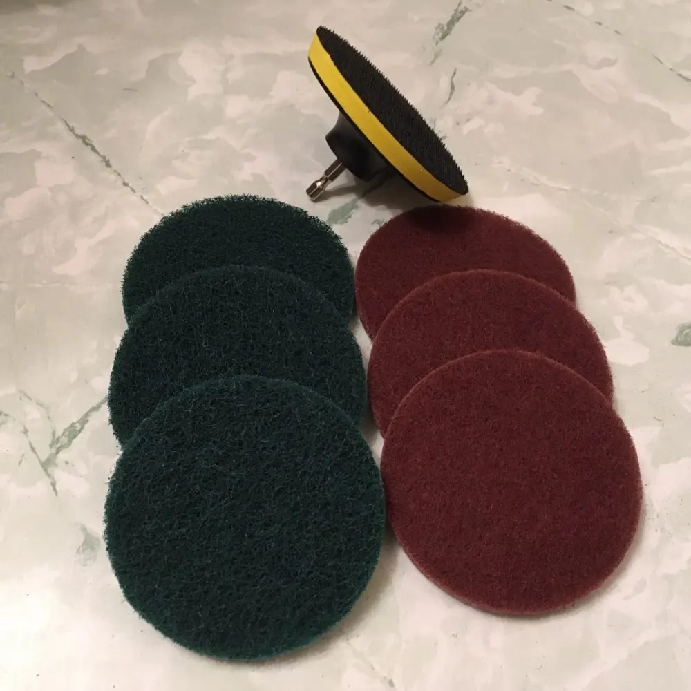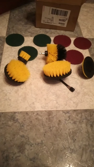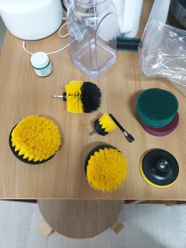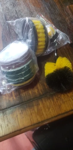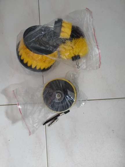 С заказом из России очень быстрая доставка. Надежная упаковка. Общее качество хорошее, у меня только овальная щетка сильно смята в двух местах, видимо из за плотности предметов в коробке. Щетины довольно жесткие, хотелось бы мягче. К примеру, возникает сомнение по чистке кафельной плитки на предмет царапин. Диски двух видов, зеленые более грубые, фиолетовые менее. Очень добротный удлинитель, можно использовать не по назначению, подходят любые биты.