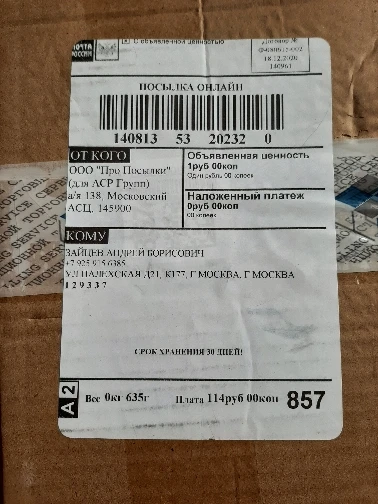 Страна: RU Ships From: Russian Federation Доставка: Seller's Shipping Method - RU 25.11.2020