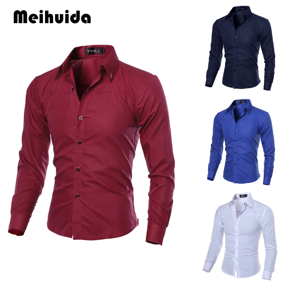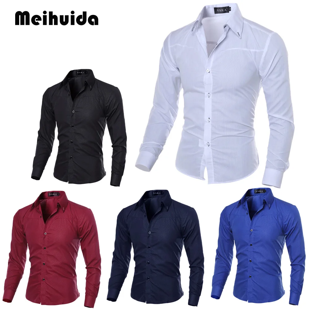 Мужская приталенная деловая рубашка, черная, белая, красная, темно-...