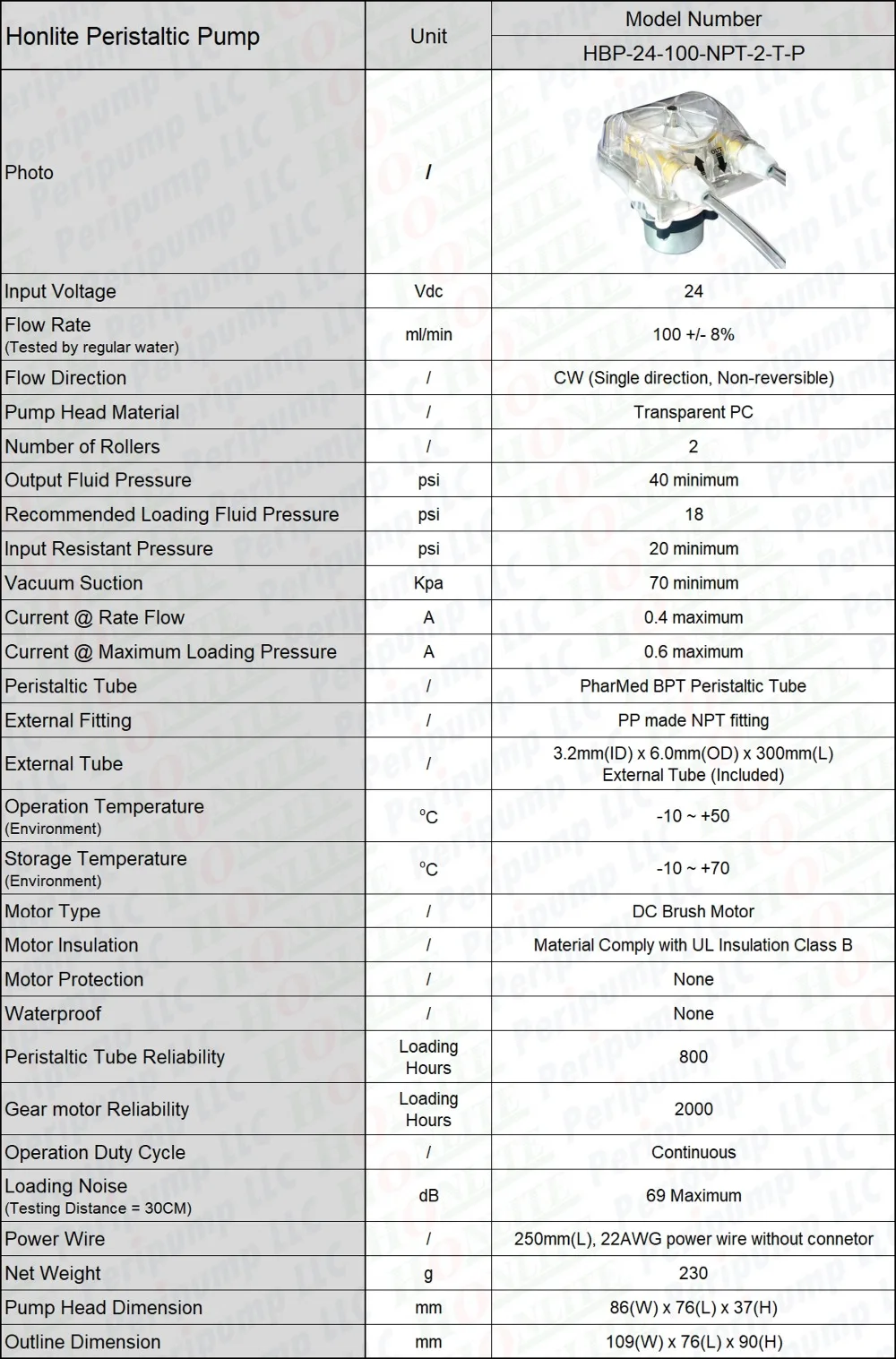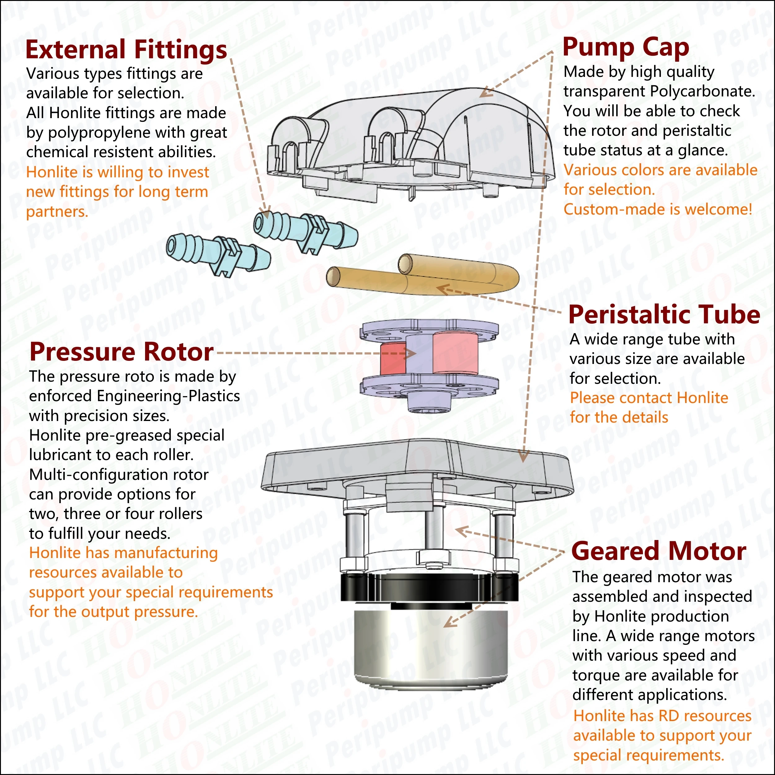 100 млмин., 2 ролика, бесщеточный перистальтический насос Honlite 24 В с бриллиантовой и фармацевтической перистальтической трубкой