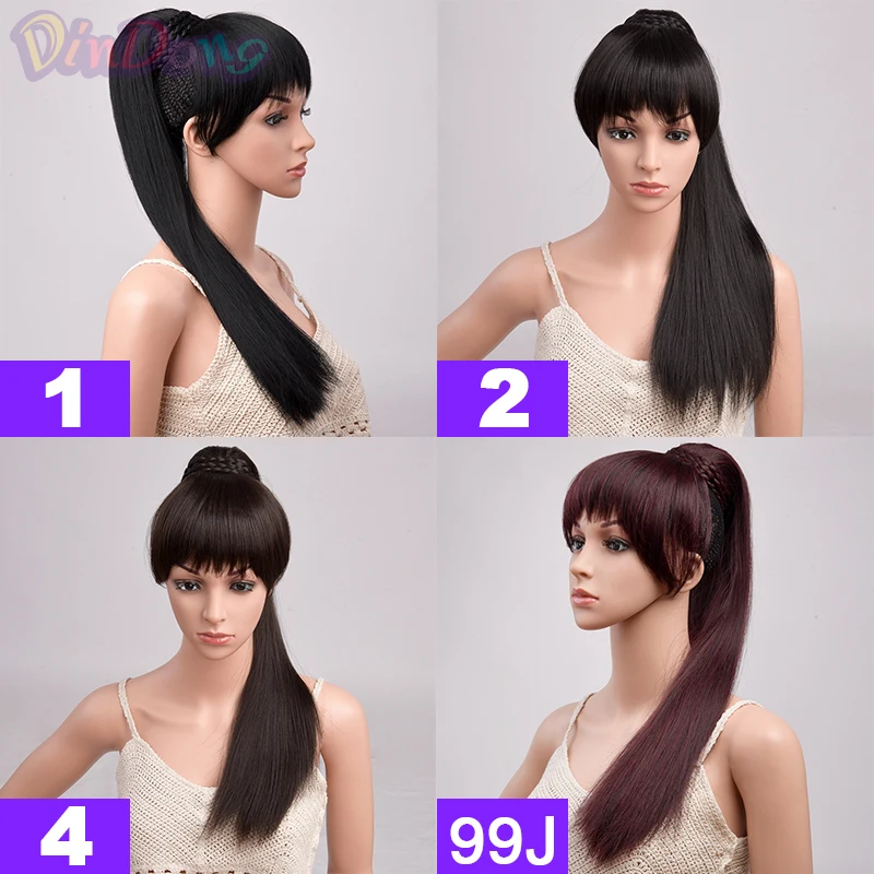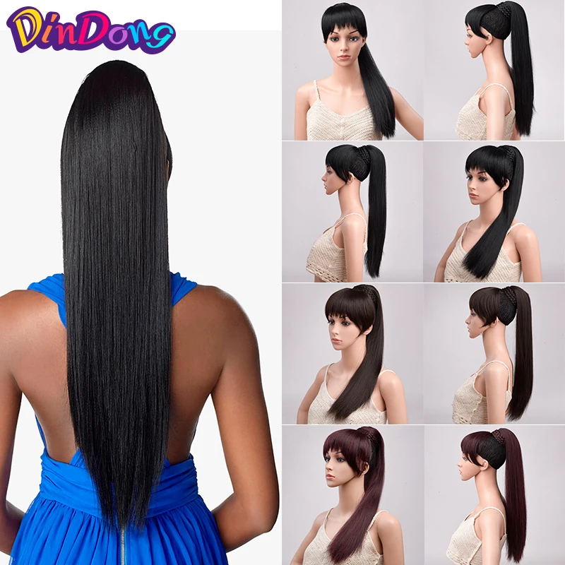 DinDong прямой хвостик с челкой, синтетический зажим для наращивания волос, афро шнурок, конский хвост, африканская американская булочка