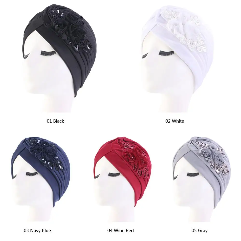 Женская шапка для выпадения волос, головной платок, тюрбан, кепка, цветок, мусульманский рак, химиотерапия шляпа, накидка, мусульманский головной убор, плиссированные шапочки, шапочки