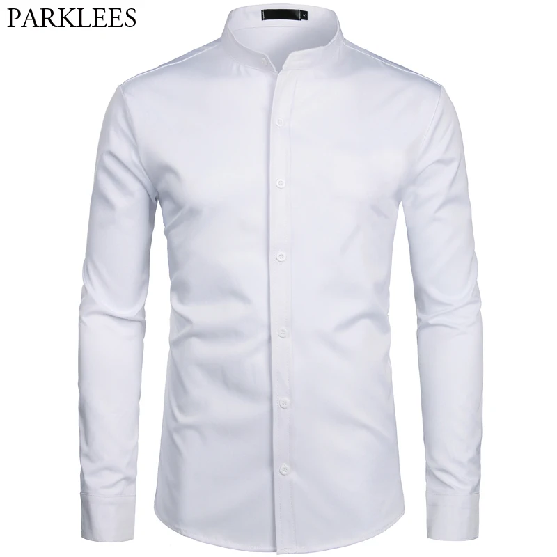 Рубашка мужская с воротником-стойкой, Классическая рубашка с длинны...