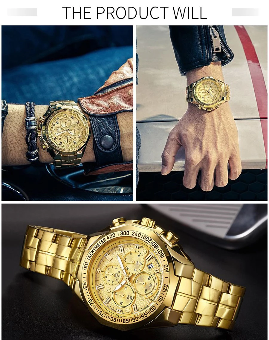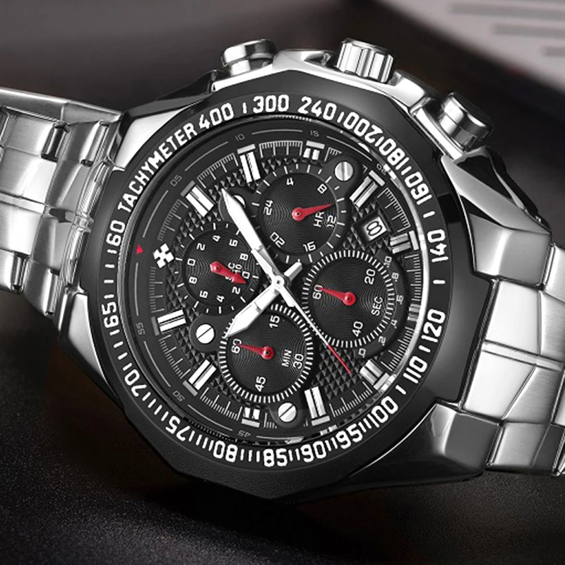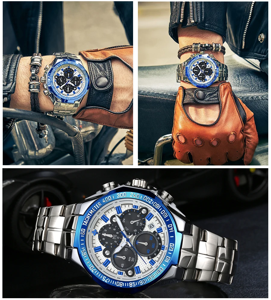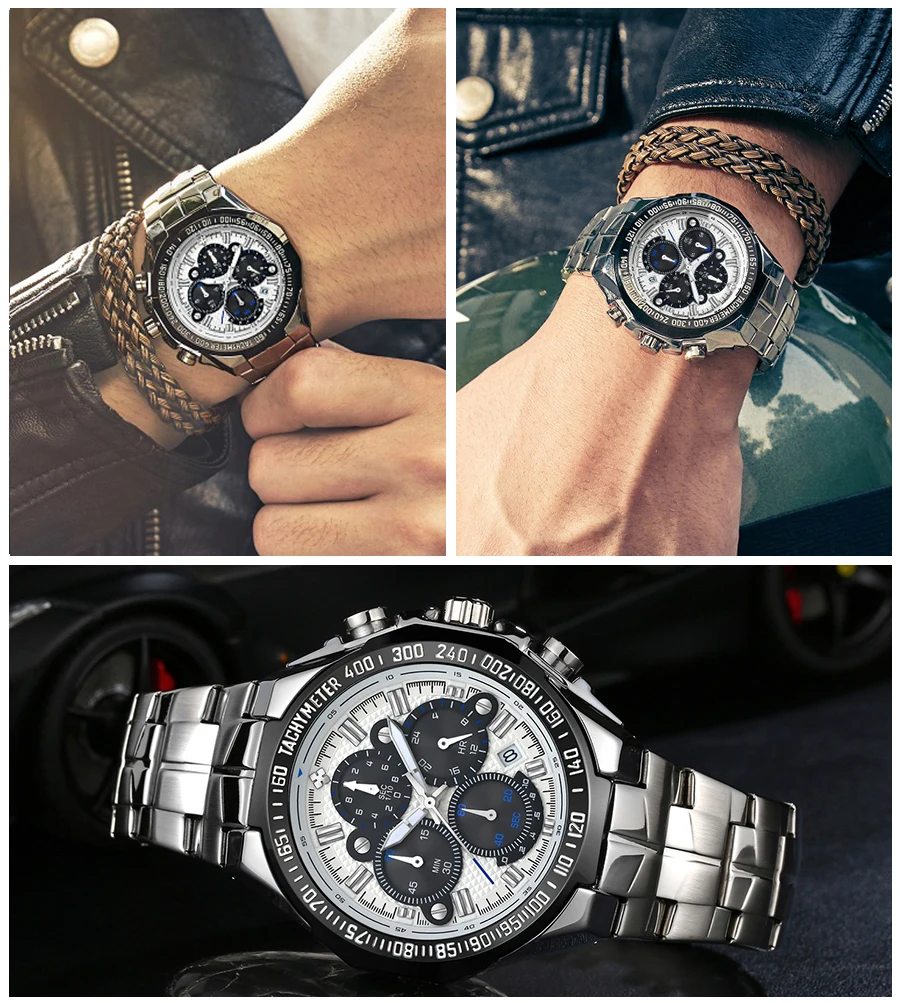 Часы наручные WWOOR Мужские кварцевые спортивные, брендовые Роскошные водонепроницаемые полностью стальные с хронографом в стиле милитари