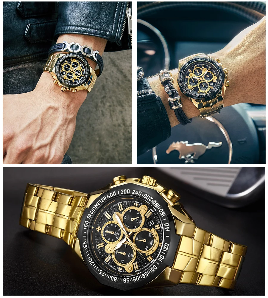 >>> Технические характеристики -Диаметр чехла: 45 мм -Толщина чехла: 13 мм -Длина ремешка: 240 мм -Ширина ремешка: 20 мм -Тип материала ремешка: нержавеющая сталь -Водонепроницаемость 3 АТМ/30 м -Аккумулятор: японский оригинальный аккумулятор -Модель механизма: высококачественный кварцевый механизм Комплектация посылка -1 х WWOOR Мужские Роскошные наручные часы; -1 x WWOOR Подарочная коробка; -1 чистящая ткань -1 регулятор ремешка часов