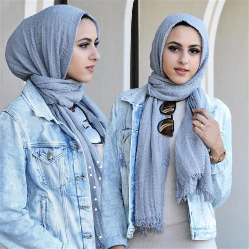 Женский элегантный 2019 твердый шарф, крик хиджаб, хлопок, мусульманский легкий шарф, тюрбан, платок, мусульманский шарф, платок