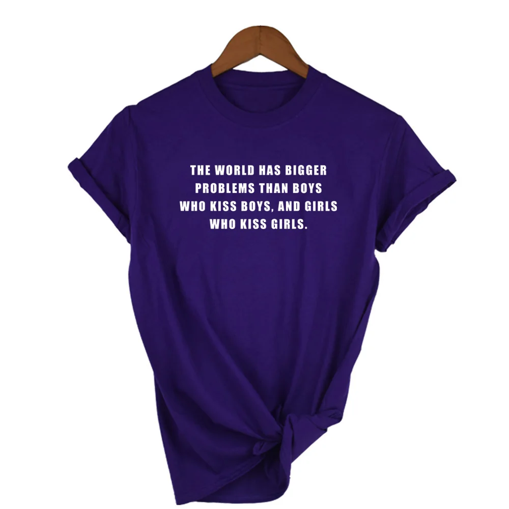 Футболка с надписью The World Has More Problems Than Boy Who Kiss для мальчиков и девочек Tumblr, футболки с графическим рисунком, футболка для женщин, топы, одежда