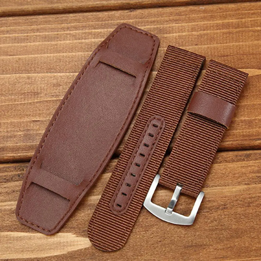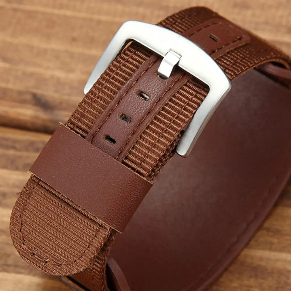 Ремешок нейлоновый для наручных часов, кожаный браслет с серебристой пряжкой из нержавеющей стали 18 мм 20 мм 22 мм 24 мм