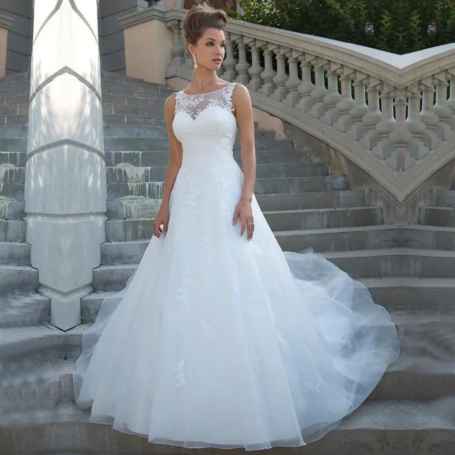 Женское ТРАПЕЦИЕВИДНОЕ свадебное платье, элегантное фатиновое платье с глубоким вырезом, пляжное платье невесты в стиле бохо без рукавов
