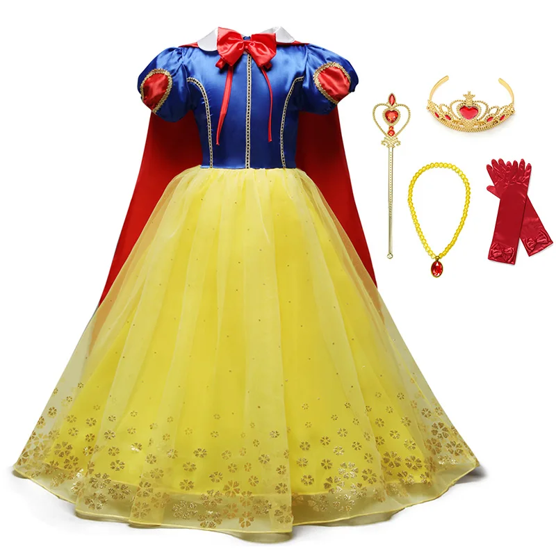 Название: VOGUEON девушки Белоснежка Принцесса нарядное платье с длинным плащом дети Пышный рукав бант Вечерние платья Дети Хэллоуин костюм