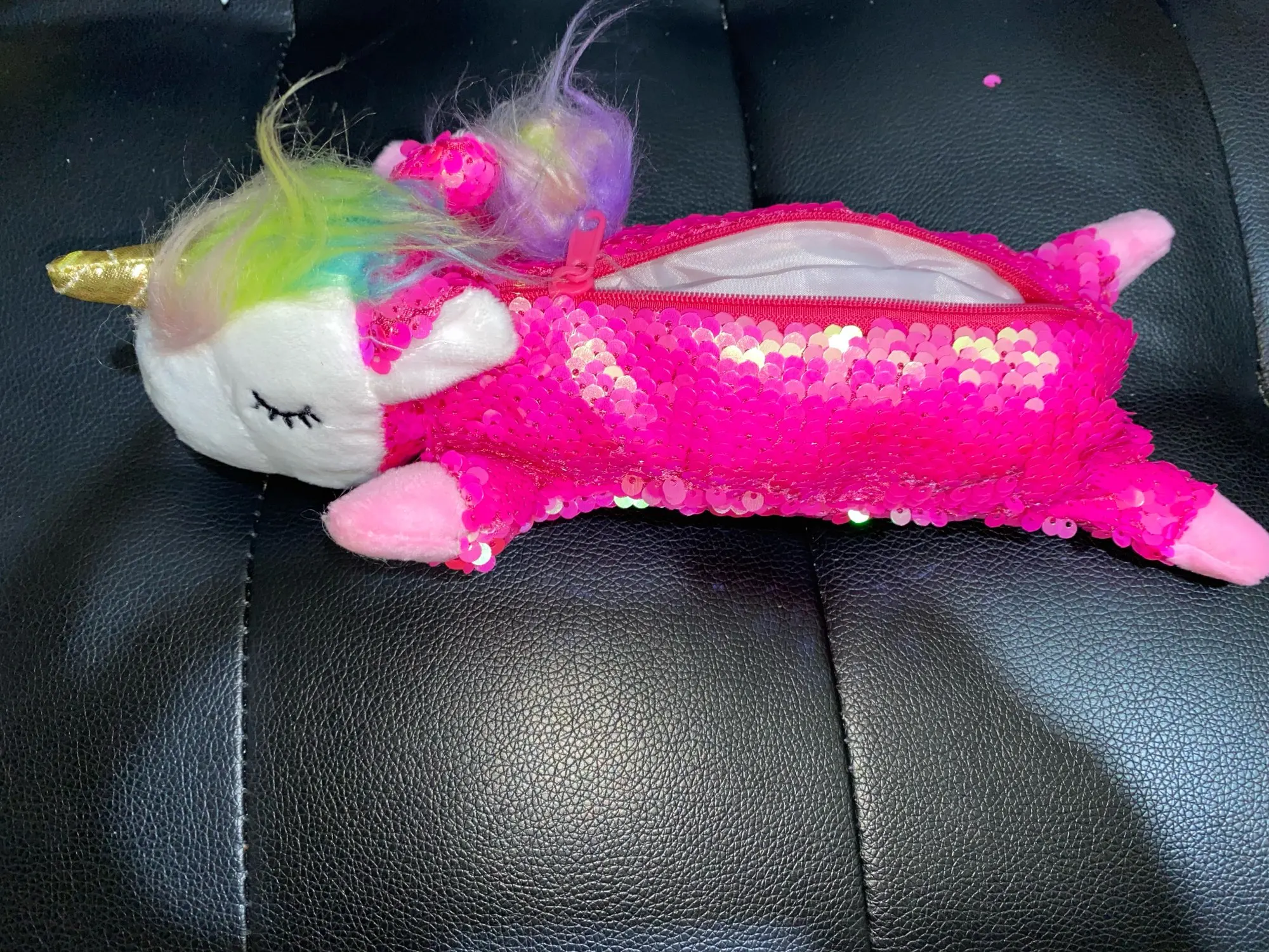 Пенал так себе, яркий, но маленький, влезли только маленькие карандаши. Дочке понравился, так как любит единорогов, а я, если б видела вживую, сроду бы не купила.