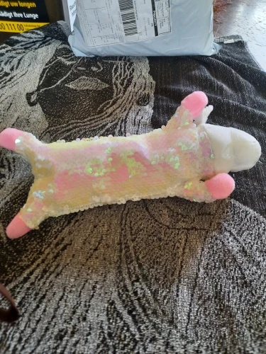 Пришёл быстро. Но вместимость мизерная. А пушок на голове и хвосте линяет. Не рекомендую. Но как безделушка сойдёт. Яркий. Симпатичный
