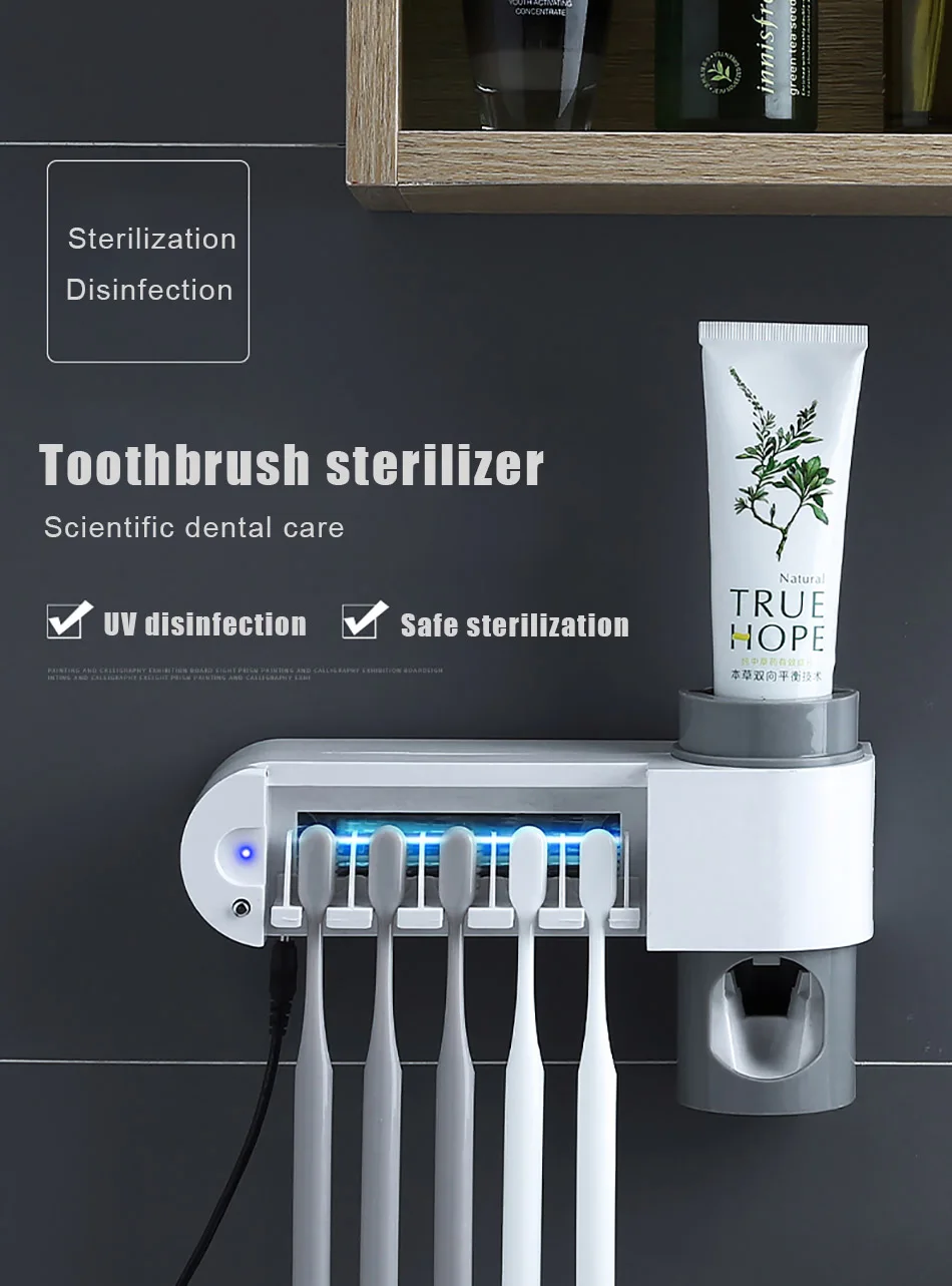 УФ стерилизатор зубных щеток-дозатор зубной пасты 2 в 1, автоматический держатель зубных щеток, аксессуары для ванной комнаты и дома