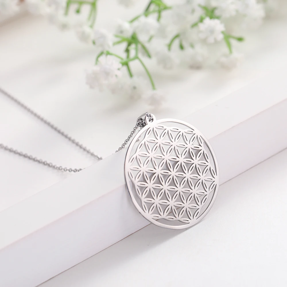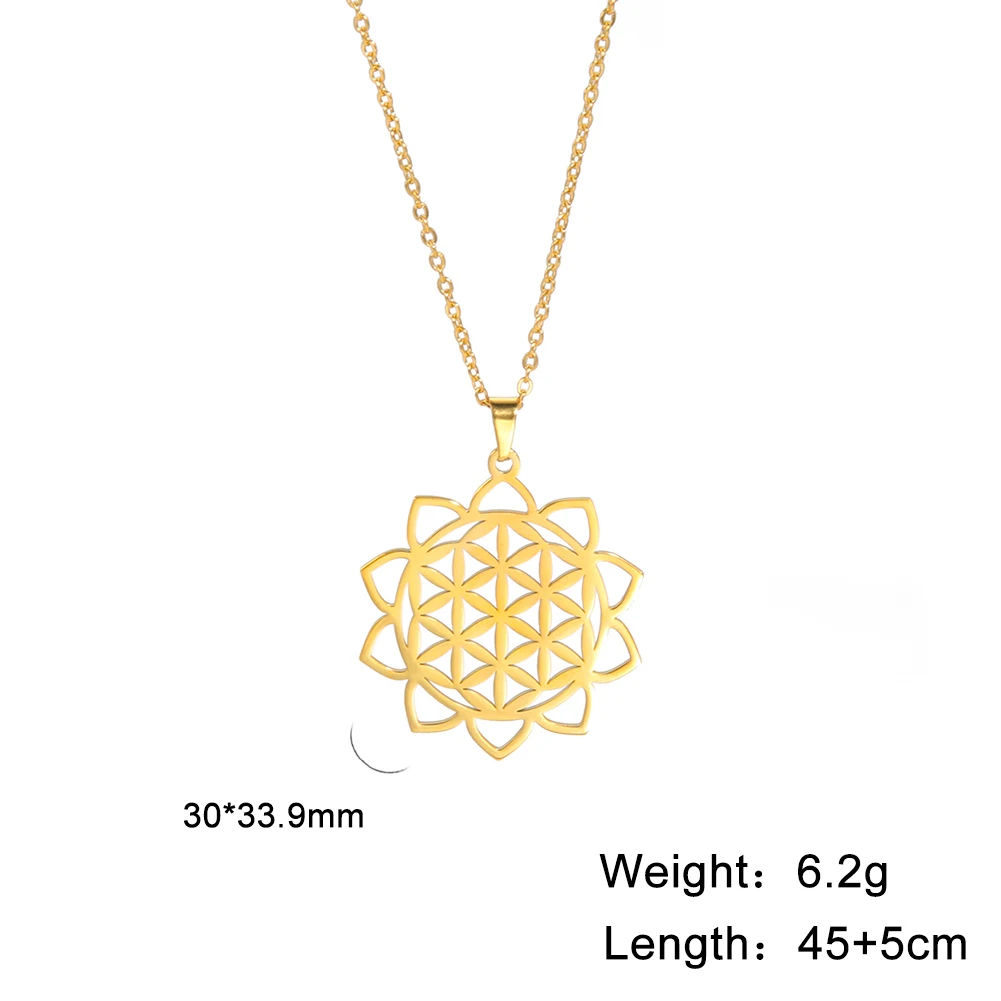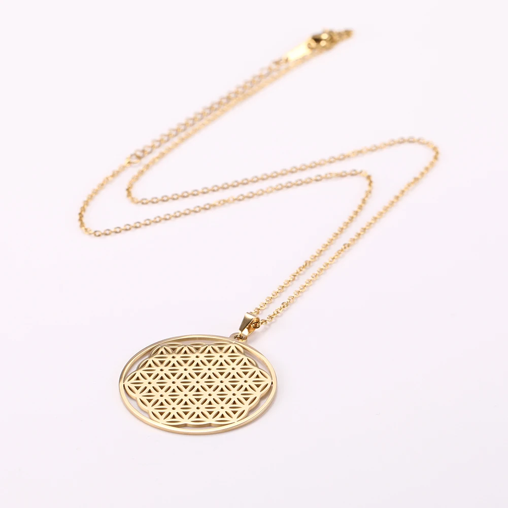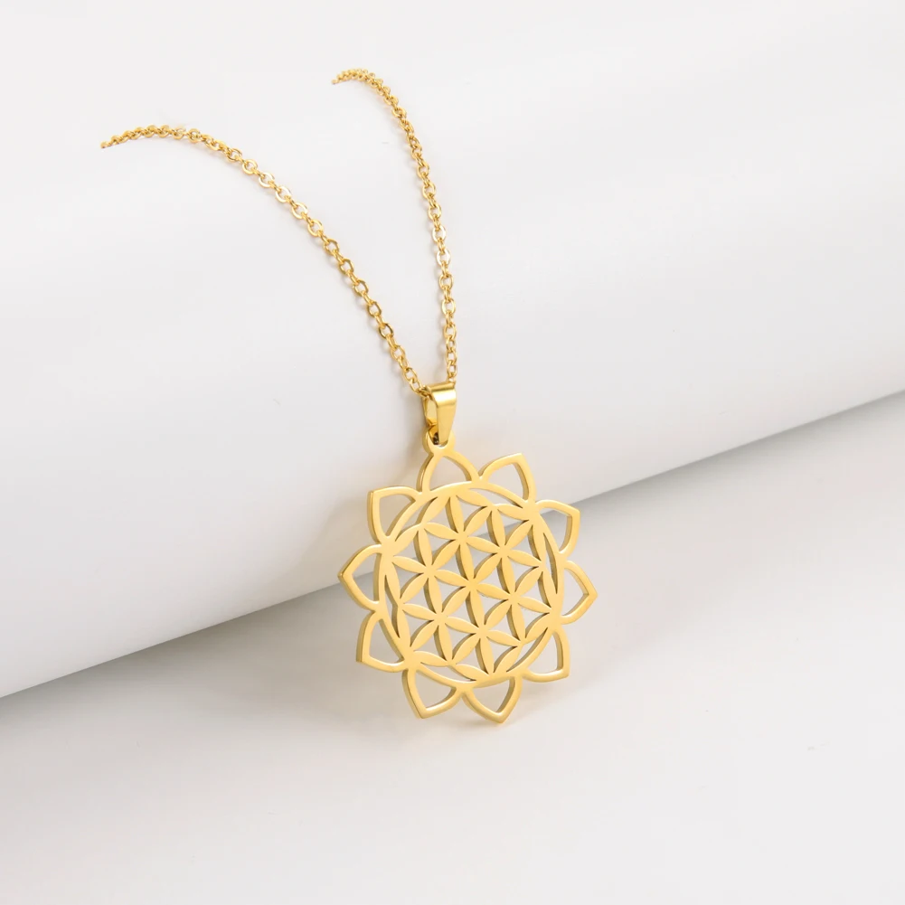 Ожерелье с подвеской в виде цветка жизни Мандала позолоченная цепочка из нержавеющей стали ювелирные изделия геометрические аксессуары амулет подарок для женщин и мужчин