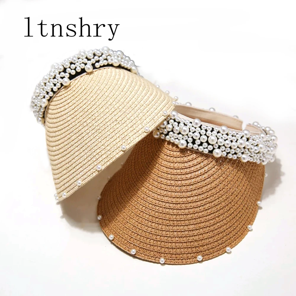 Летняя плетеная вручную соломенная шляпа с жемчугом 2019, Солнцезащитная шляпа, козырек, Женская Пустая Шляпа, пляжные шляпы для девочек, модная шляпа, Женская дорожная шляпа