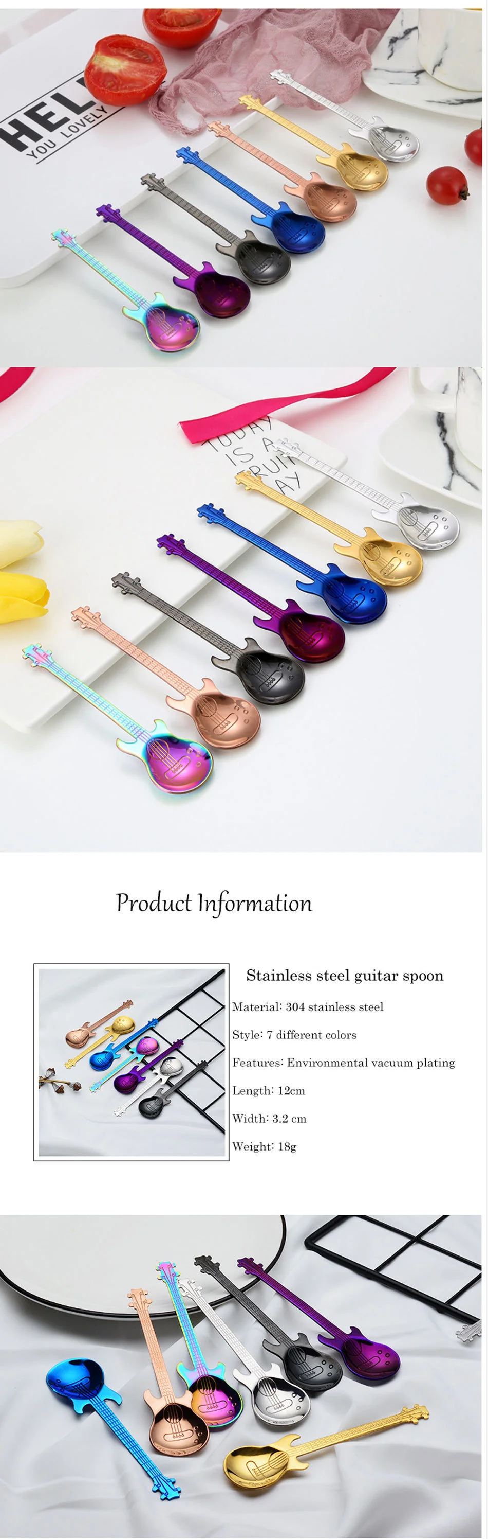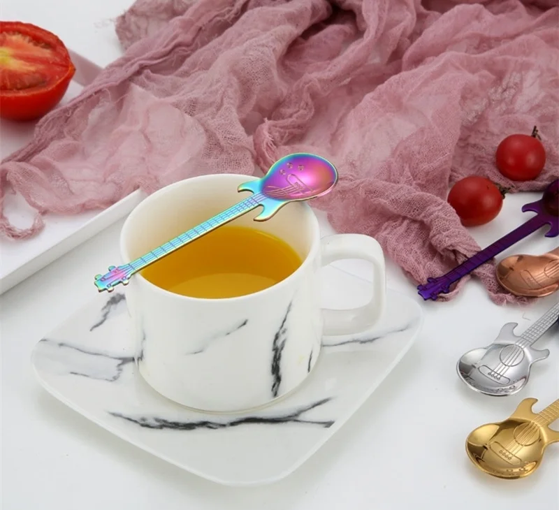 1Pc нержавеющая сталь гитара шаблон ложка творческий молочный кофе мороженое конфеты чайная ложка подарок перемешать совок
