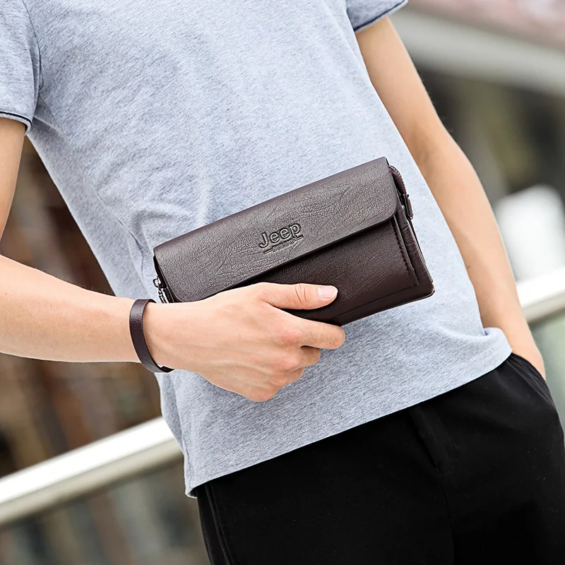 Роскошный брендовый дневной клатч JEEP BULUO, мужские сумки для телефона и ручки, высококачественные кожаные кошельки из спилка, мужские сумочки