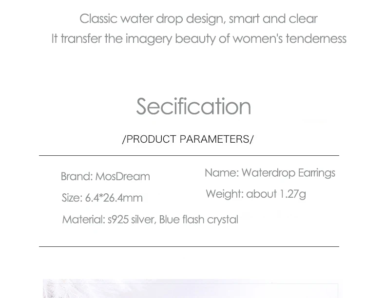 Женские серьги-гвоздики ITSMOS в форме капли воды из серебра s925 простого дизайна Элегантные Очаровательные умные серьги-гвоздики с кристаллами голубого и прозрачного цвета