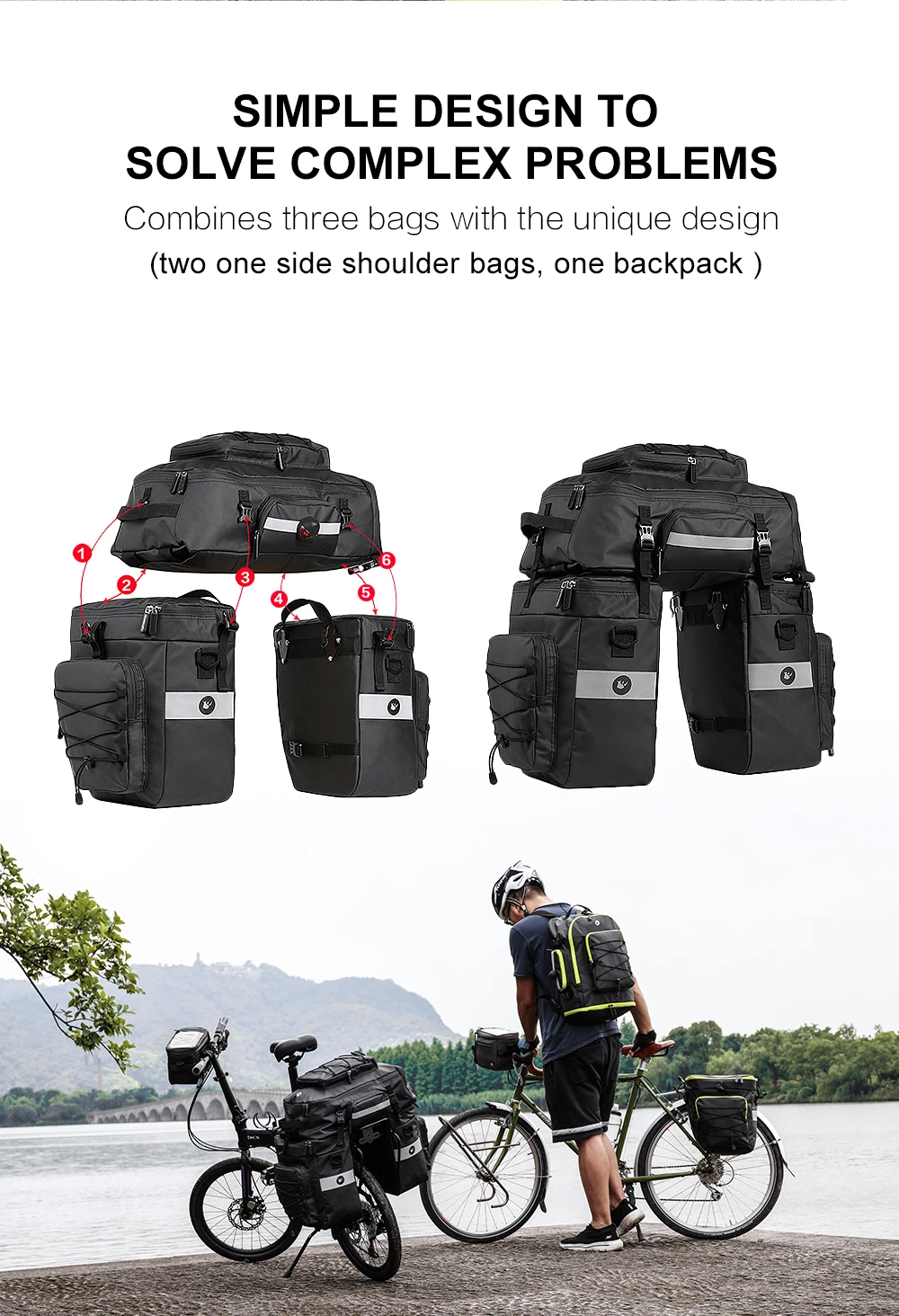 Сумка на багажник горного велосипеда RHINOWALK 3 в 1, двухсторонняя, заднее сиденье, багажник