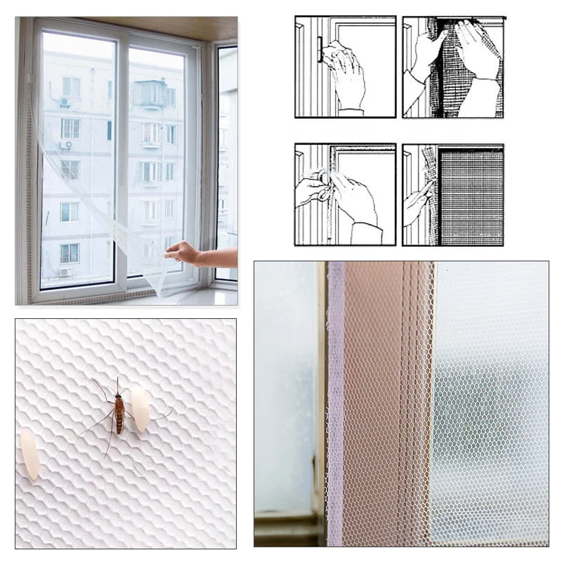 Просто обрежьте сетку и поместите прозрачную ленту (в комплекте) на края вашей оконной рамы