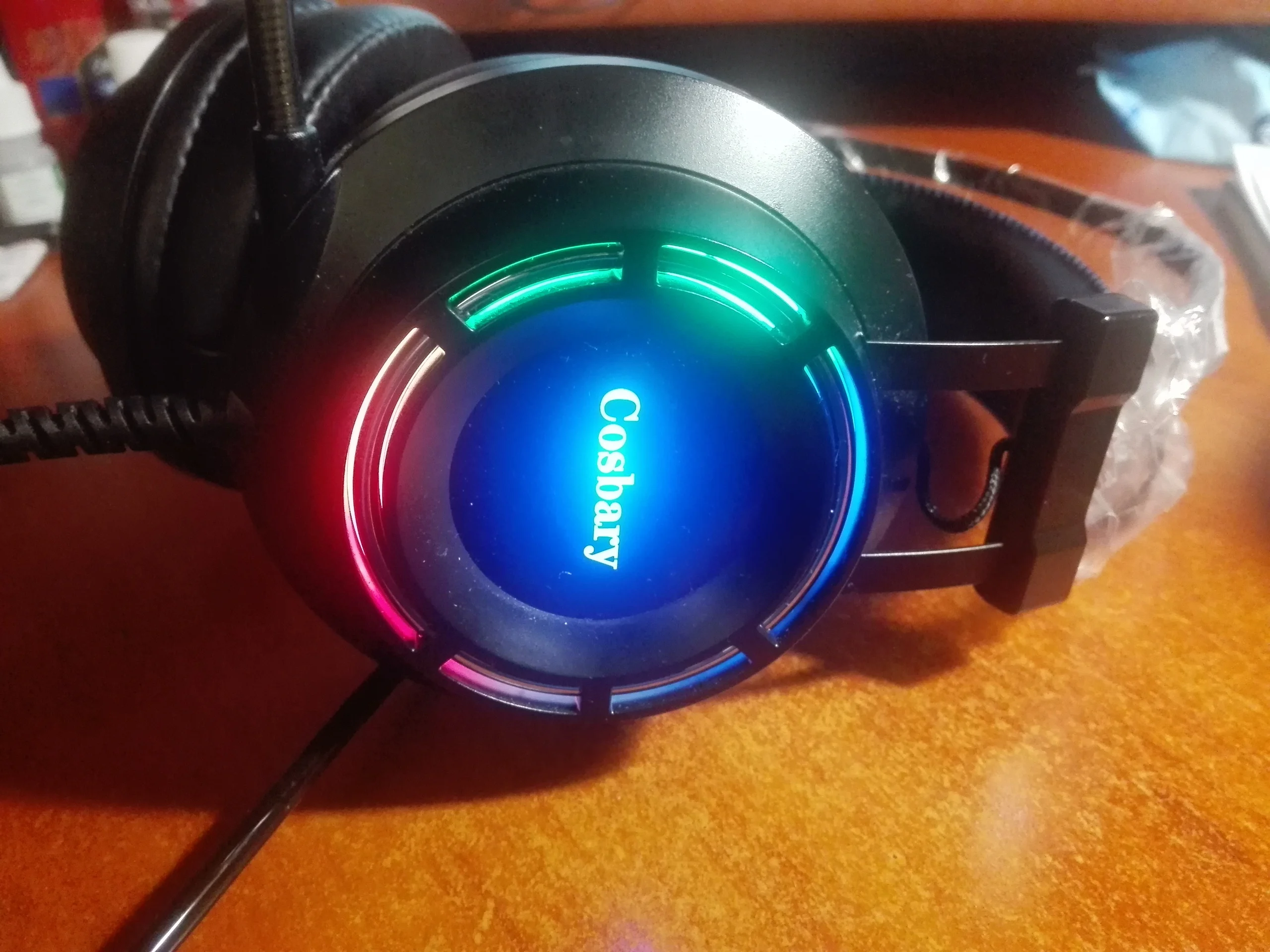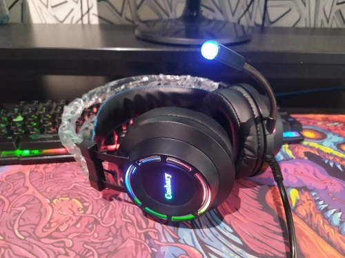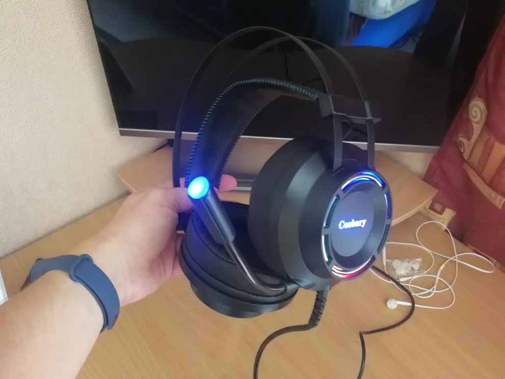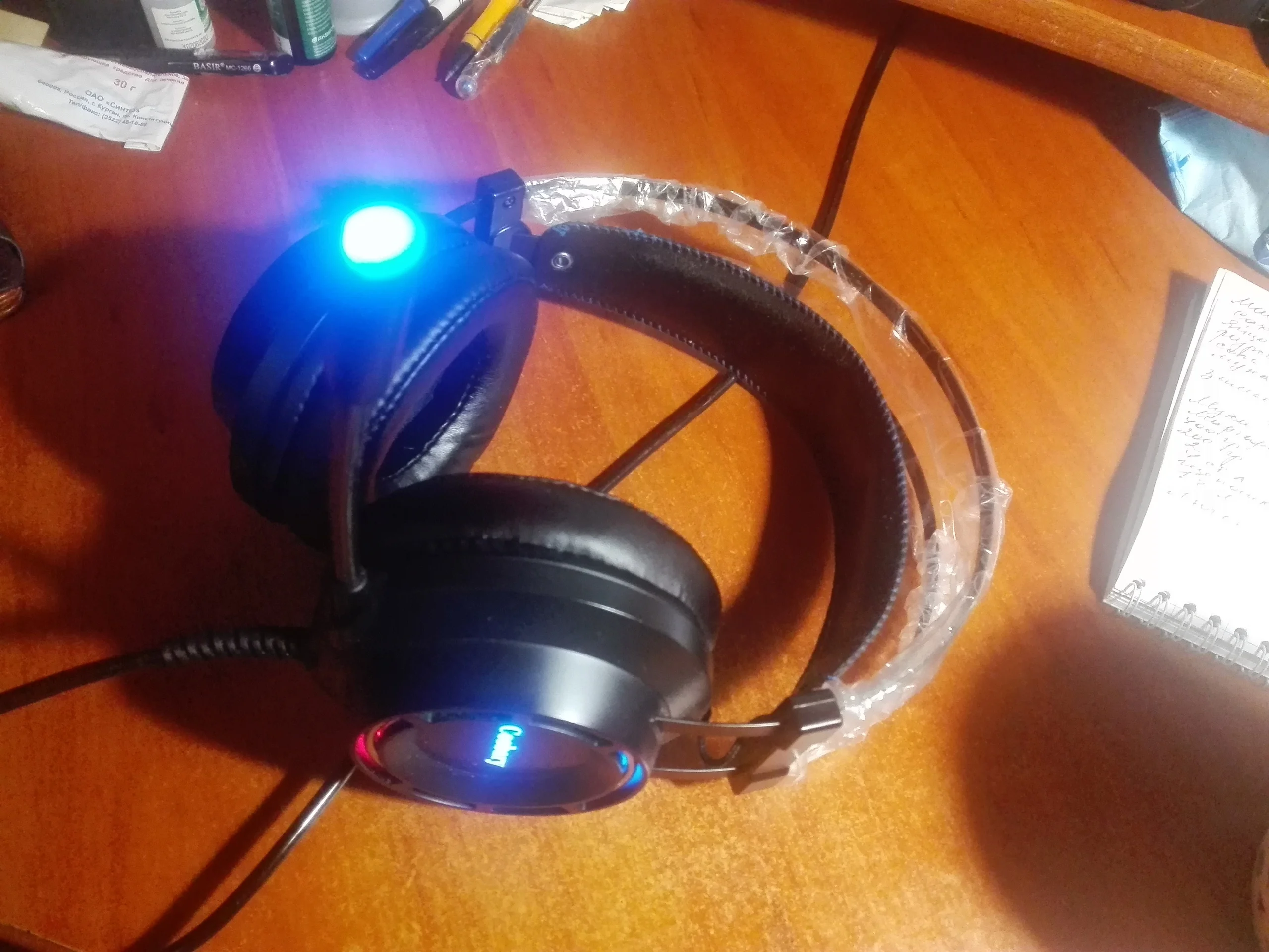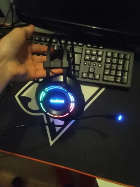 доставка 2 дня Мск через IML, за свои деньги не плохой вариант, если наушники нужны как гарнитура + простой источник звука. звук прглушенный как будто издалека, попробую исправить программно. микрофон пишет чисто, внешне не создает впечатление что быстро развалится. сверху металлические дуги. подсветка не сильно яркая