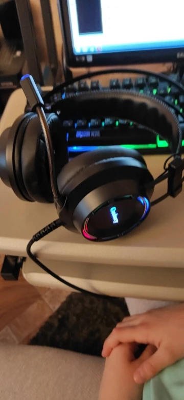 Хорошие наушники. Звук нормальный. Для бытового использования сойдёт. Качество изготовления удовлетворительное. Недостатки: не регулируются по горизонтали, только вертикальная регулировка, не отключаются лампочки, регулировка звука слева сзади на наушнике, мне не очень удобно настраивать громкость, в остальном норм. Доставка относительно быстрая. 3 недели до Сахалина.