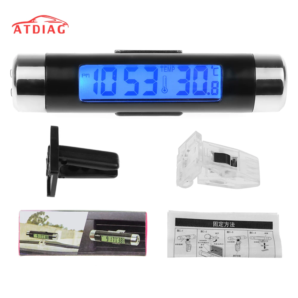 Лидер продаж, Автомобильный цифровой термометр 2 в 1 с ЖК-зажимом, часы с календарем, автомобильные синие аксессуары для автомобиля часы с подсветкой