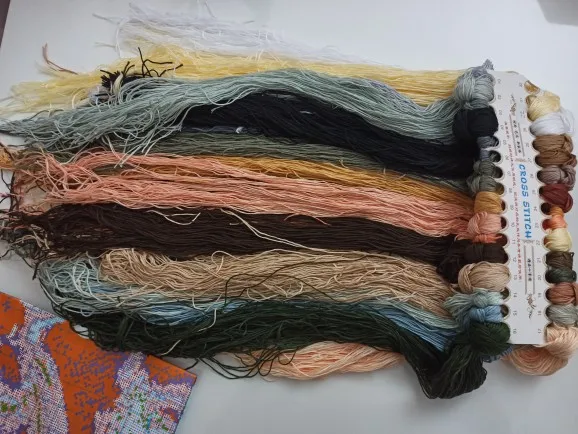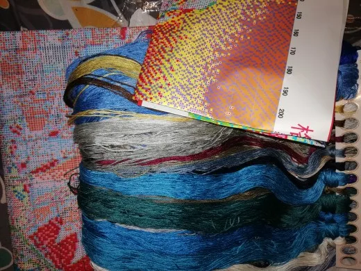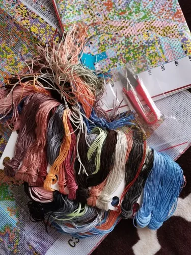 пришло за полтора месяца в Беларусь. оригинал фото был с фильтром "сепия". по итогу мне пришли нитки и фиолетовые, и синие, и зелёные, и серые (на лицо, волосы и фон)... придется теперь подбирать самой. такая оценка только потому, что продавец не тянул время и сразу вернул часть денег (по запросу).