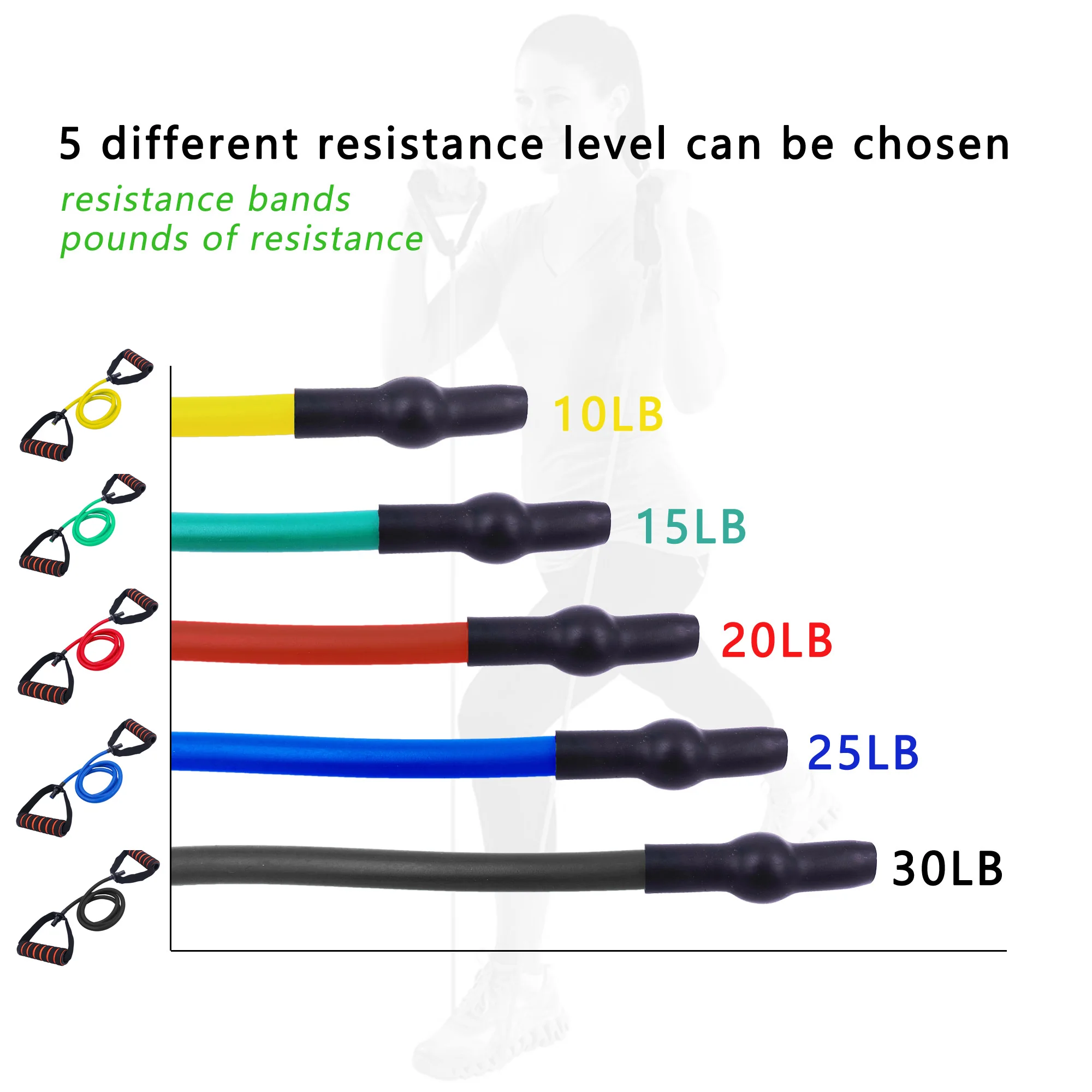 Эластичные ленты-Эспандеры с ручками для фитнеса, растяжки, тренировок, 10-30 фунтов