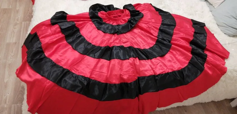 Тип товара: женские костюмы фламенкоПосылка включает в себя: одну юбкуПовод: фестиваль испанская коррида, фламенко, одежда для сценического танца, представлениеРазмер юбки:Длина: 90 см эластичный дизайнS = 360 градусов; M = 540 градусов; L = 720 градусов