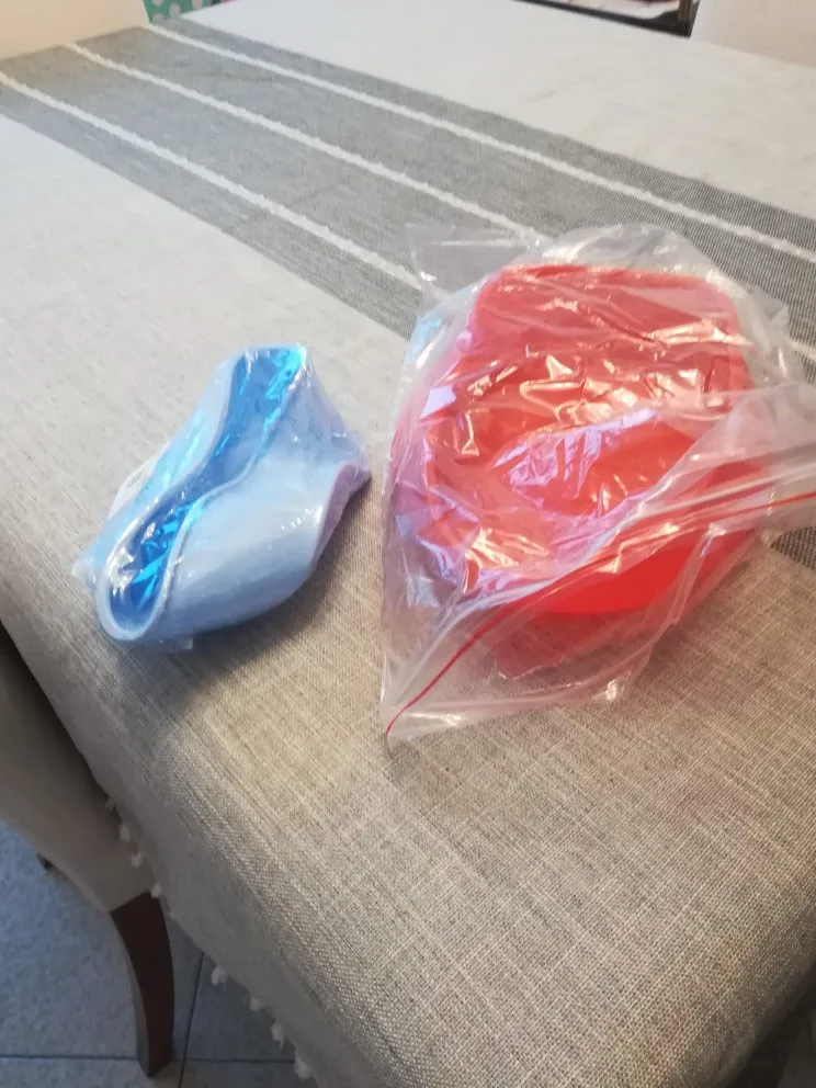 Отправили быстро. Дошли быстро. Трек отслеживался. На синей форме есть отметки (температурный режим и прочее), на красной - отсутствуют. В готовке использовали. Запаха - нет. Покупкой и магазином доволен. Буду ещё покупать. Спасибо продавцу.