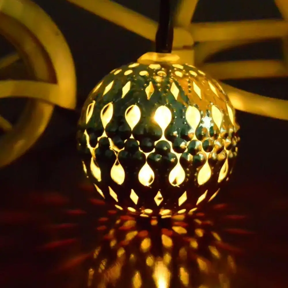 Уличная светодиодная гирлянда на солнечной батарее для внутреннего дворика, марокканский шар, фонарь, сказосветильник щение, водонепроницаемая цепочка, s, золотистая, серебристая, садовая лампа-шарик