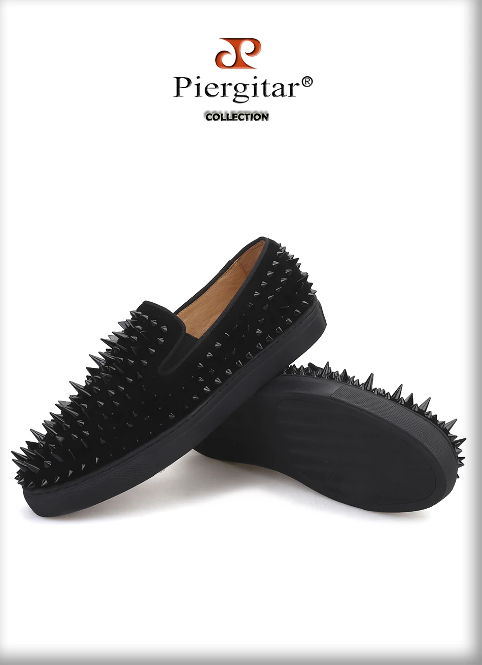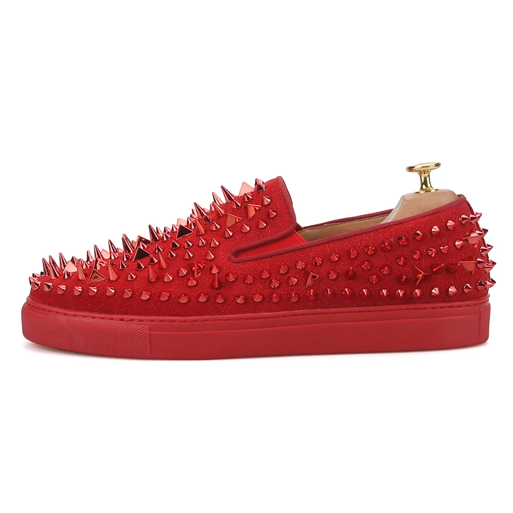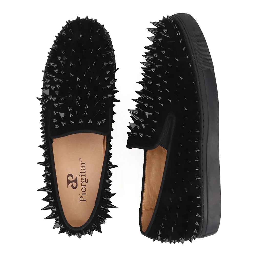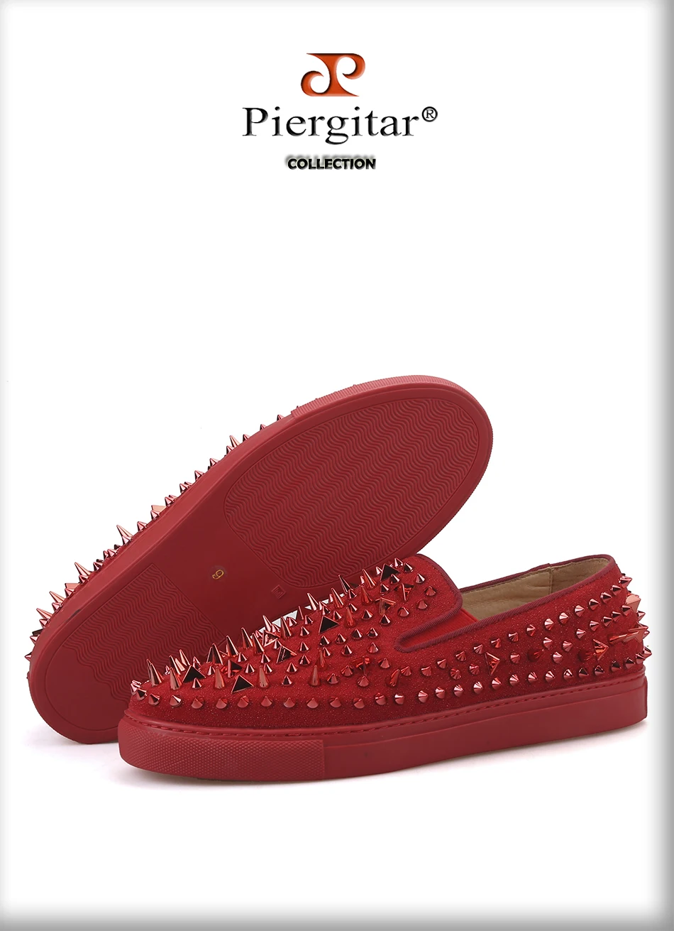 Кроссовки мужские Piergitar, из коровьей замши, красные и черные цвета, с шипами, спортивный стиль, повседневные, 2019
