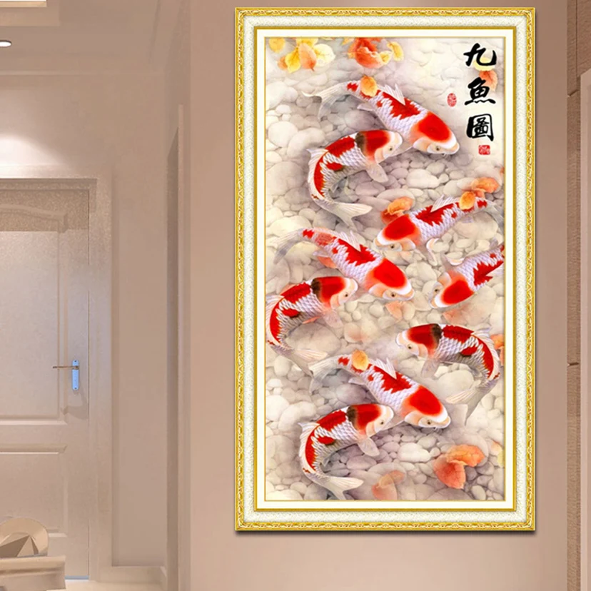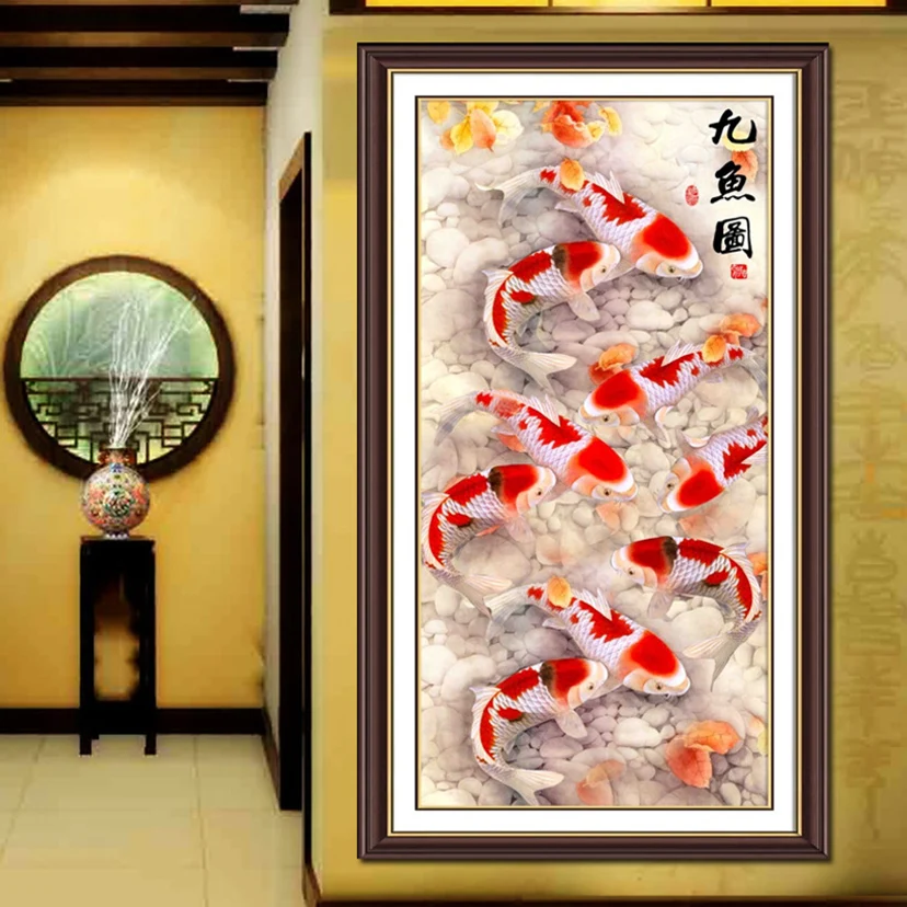 DIY 5D девять рыбок вышивка пейзажа, полная круглая или квадратная стразы, алмазная живопись, вышивка крестиком, вышивка рукоделие WG874