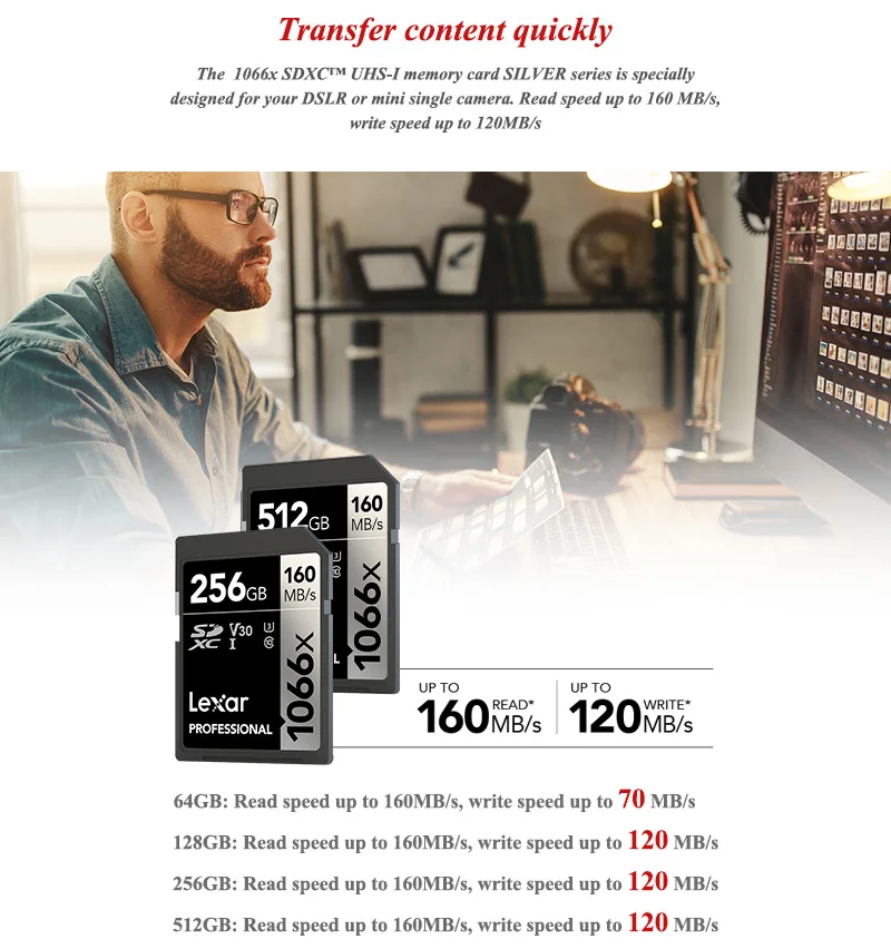 Профессиональная SD-карта Lexar 1066x, оригинальная карта памяти до 160, 512 ГБ, 256 ГБ, 128 ГБ, 64 ГБ, SDXC, флэш-карта U3 V30