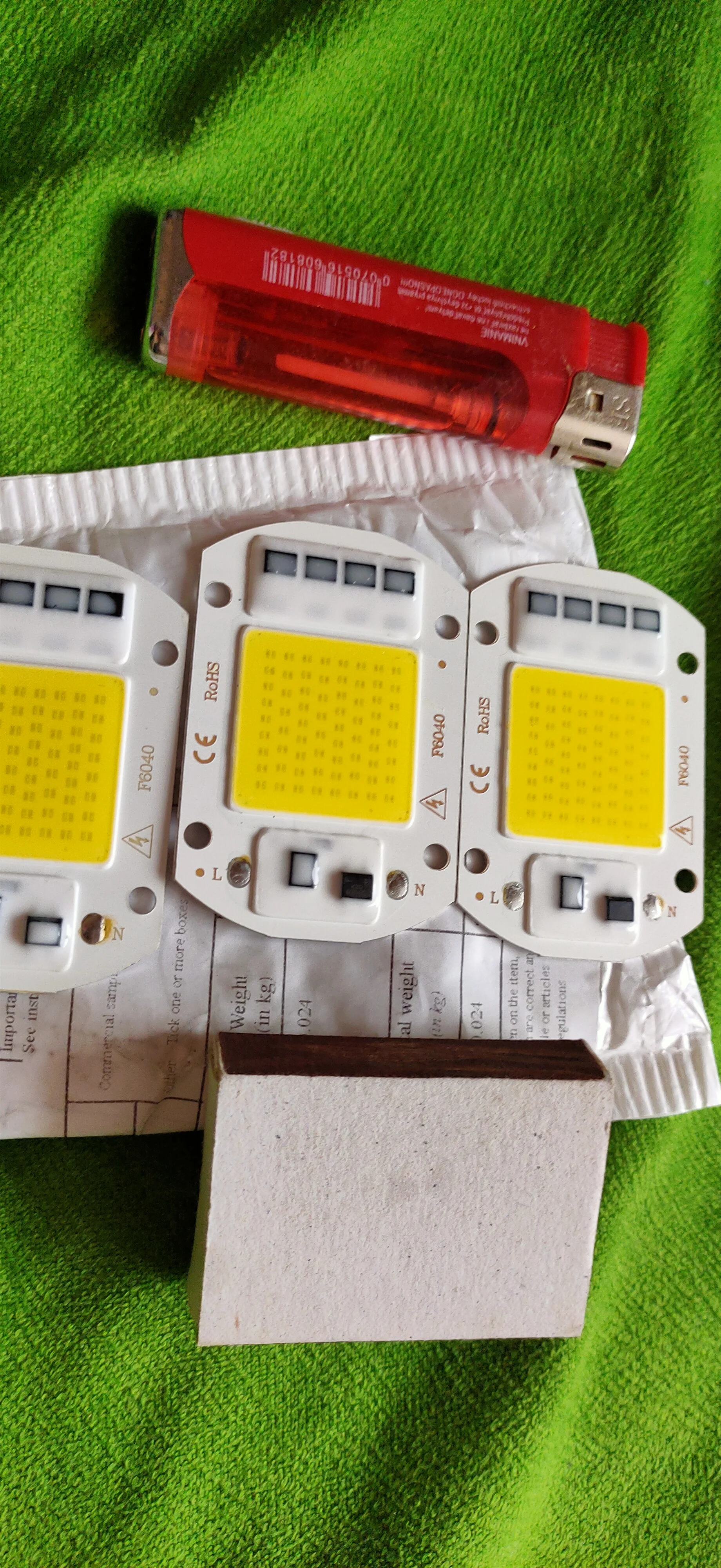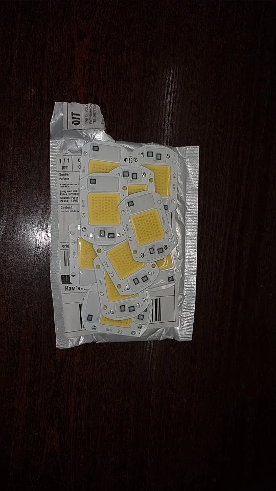 Чипы пришли в пакомат в конверте, на место встали без проблем. 50 ватт-потребляют 58 ватт, 30 ватт -34,7 ватт, по светоотдаче не проверял , но на глаз поменьше светят. Из минусов : нет маркировки на чипах по мощности. В остальном все хорошо.Продавцу респект!
