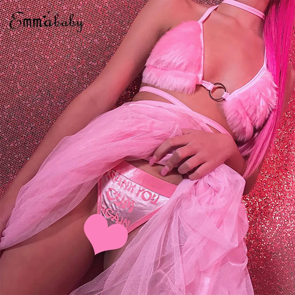 Сексуальные женские меховые бюстгальтеры розового цвета, женский ук...
