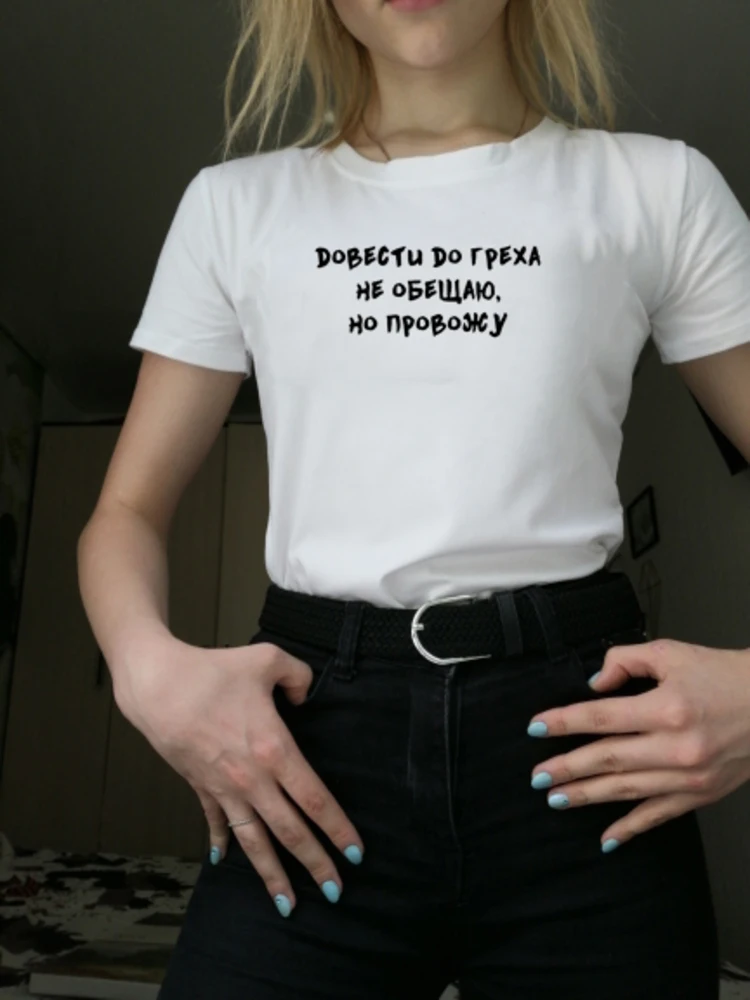 Футболка с надписью на русском языке, топ, футболка, модная уличная...