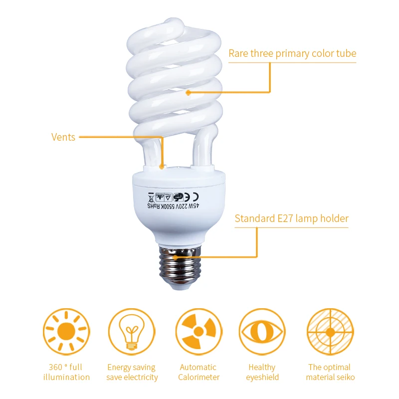 Осветительные лампы высокой яркости, 45 Вт, 5500 к, фотосъемка при дневном свете люминесцентные, E27 Цоколь для софтбокса, фотостудии