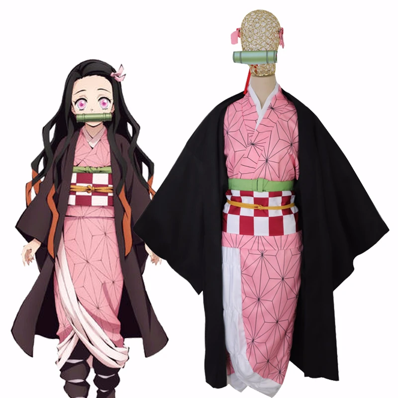 Костюм для косплея камадо незуко из аниме рассекающий демонов, Розовое Кимоно для девочек, костюм на Хэллоуин, полный комплект для женщин