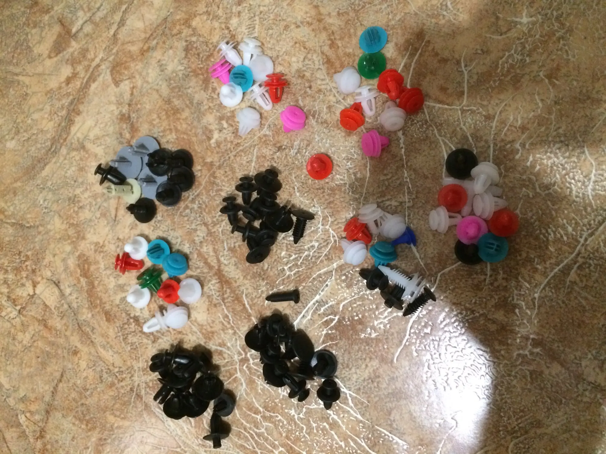 Прислали 90 штук, а не 100 штук как в описании товара. Качество пластика среднее, может сразу лопнуть при защелкивании. Клипсы для внутренней панели, (которые мне больше всего были нужны) прислали всего 1 штуку.