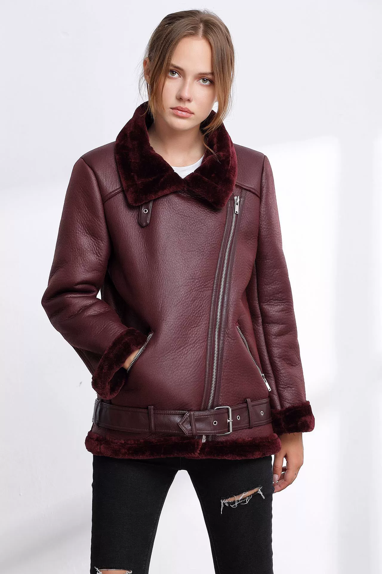 Зимнее пальто из овечьей кожи, женское меховое пальто из искусственной кожи, Женская куртка-Авиатор с утепленной меховой подкладкой