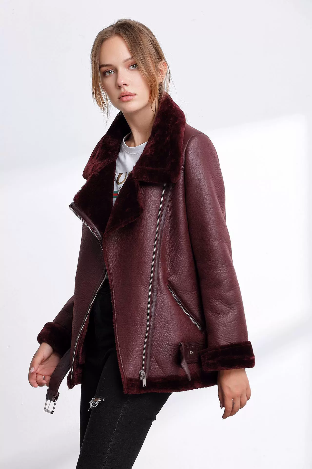 Faux Shearling Sheepskin CoatMotorcycle Female Overcoat