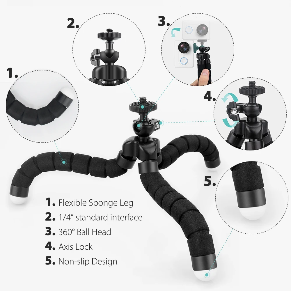 Vamson для GoPro Hero 7 6 5 4 3 + 2 1 Аксессуары гибкий мини-осьминог штатив с винтовым зажимом для телефона для Millet для yi 4k VP414