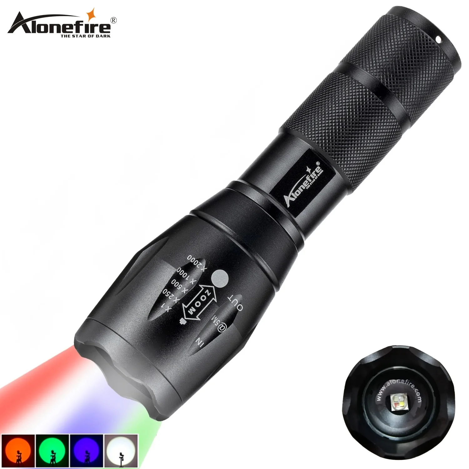 Тактический фонарь Alonefire E17WRGB, красныйзеленыйсинийбелый, светодиодный ультраярсветильник фонарь для охоты, водонепроницаемый фонарь 18650