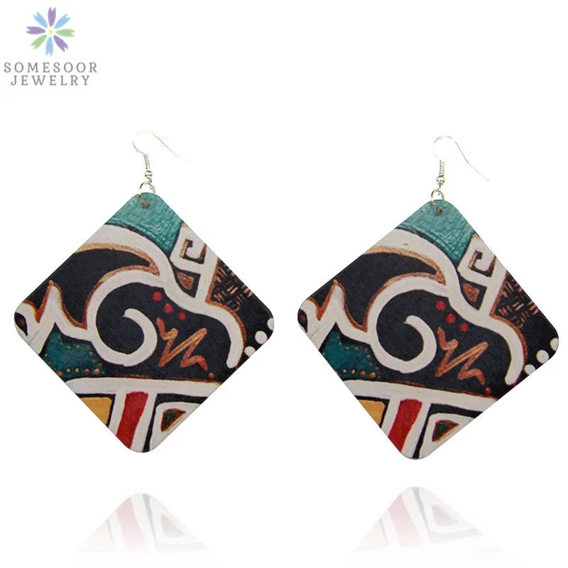 SOMESOOR 7 африканских цветов расческа деревянные серьги в форме ка...